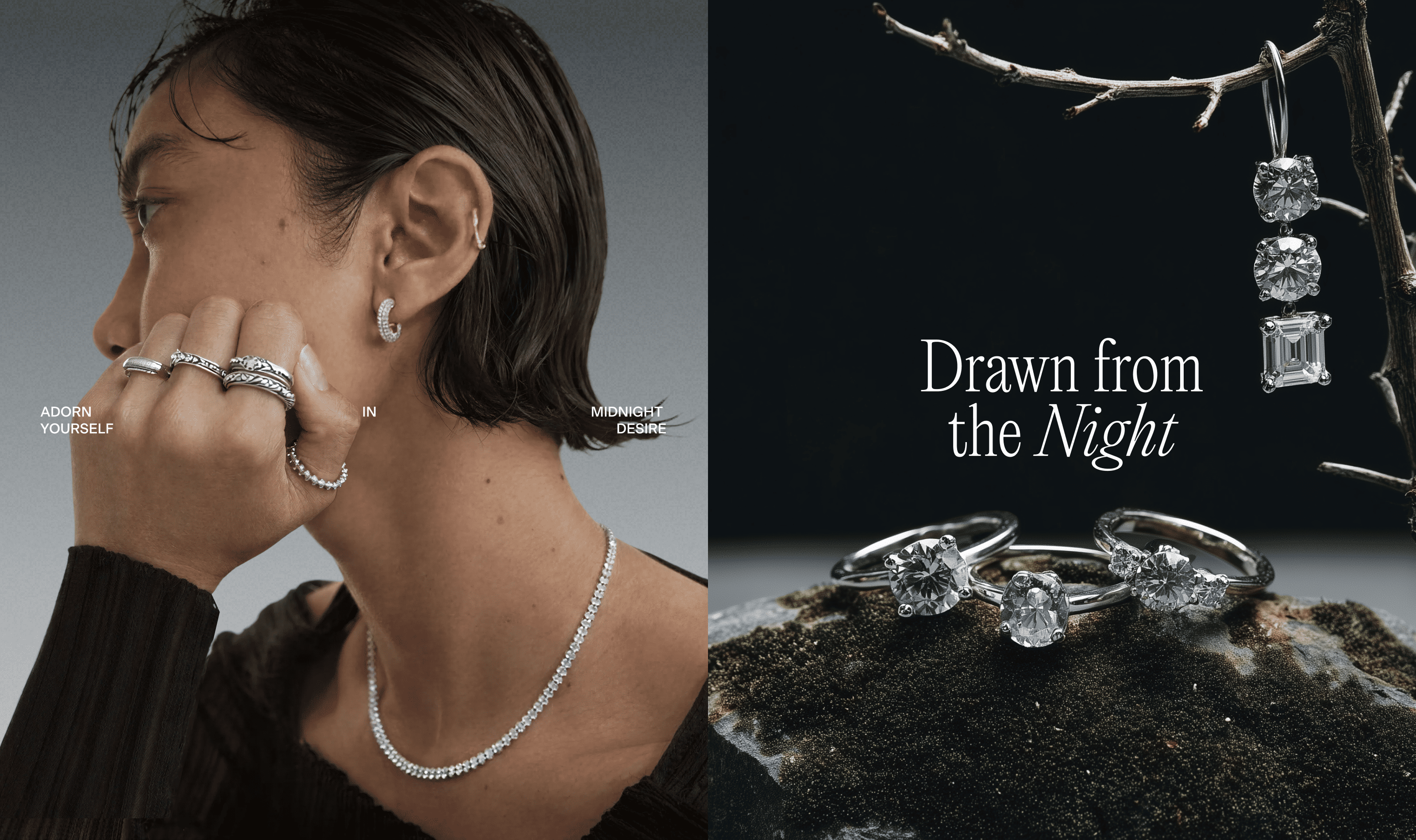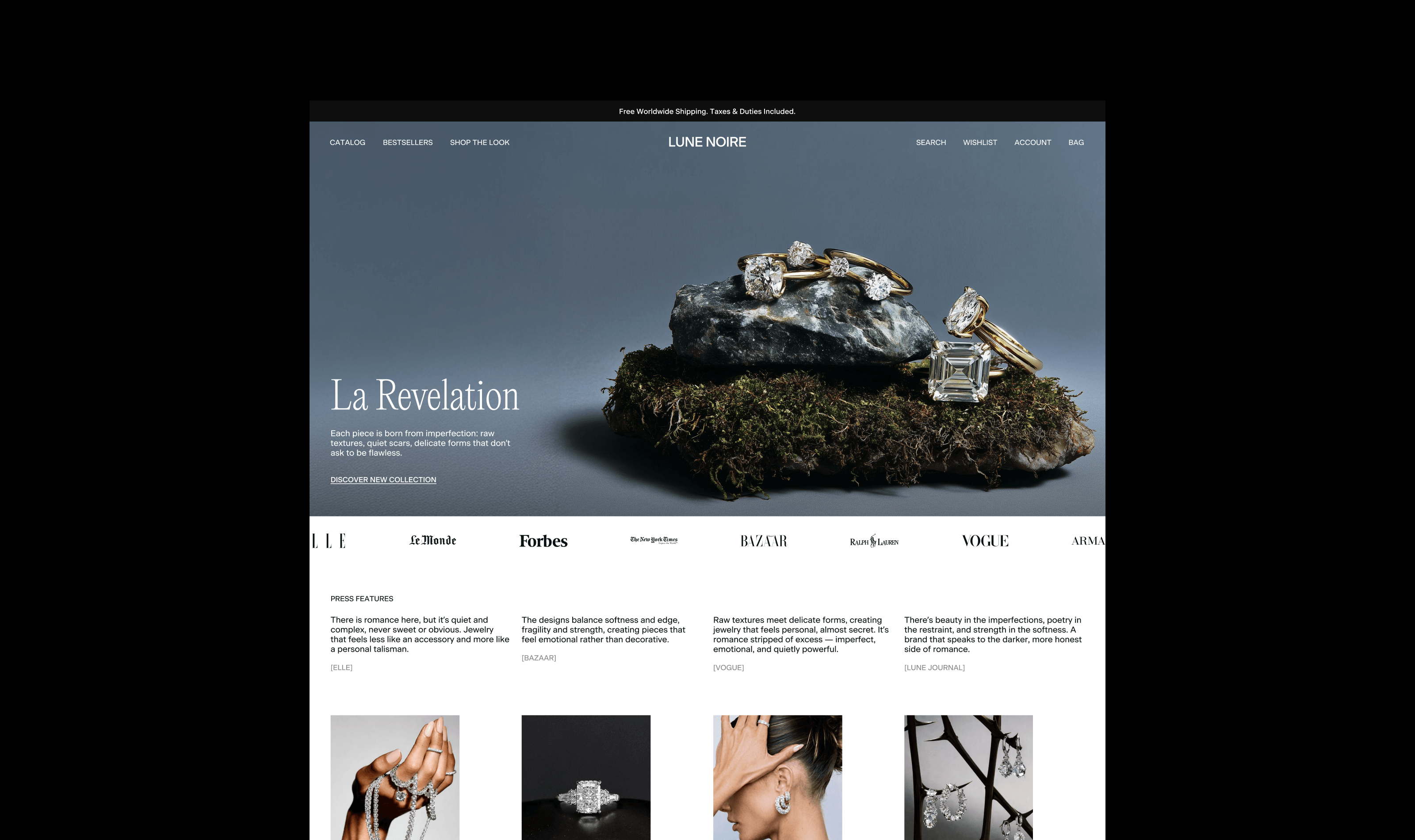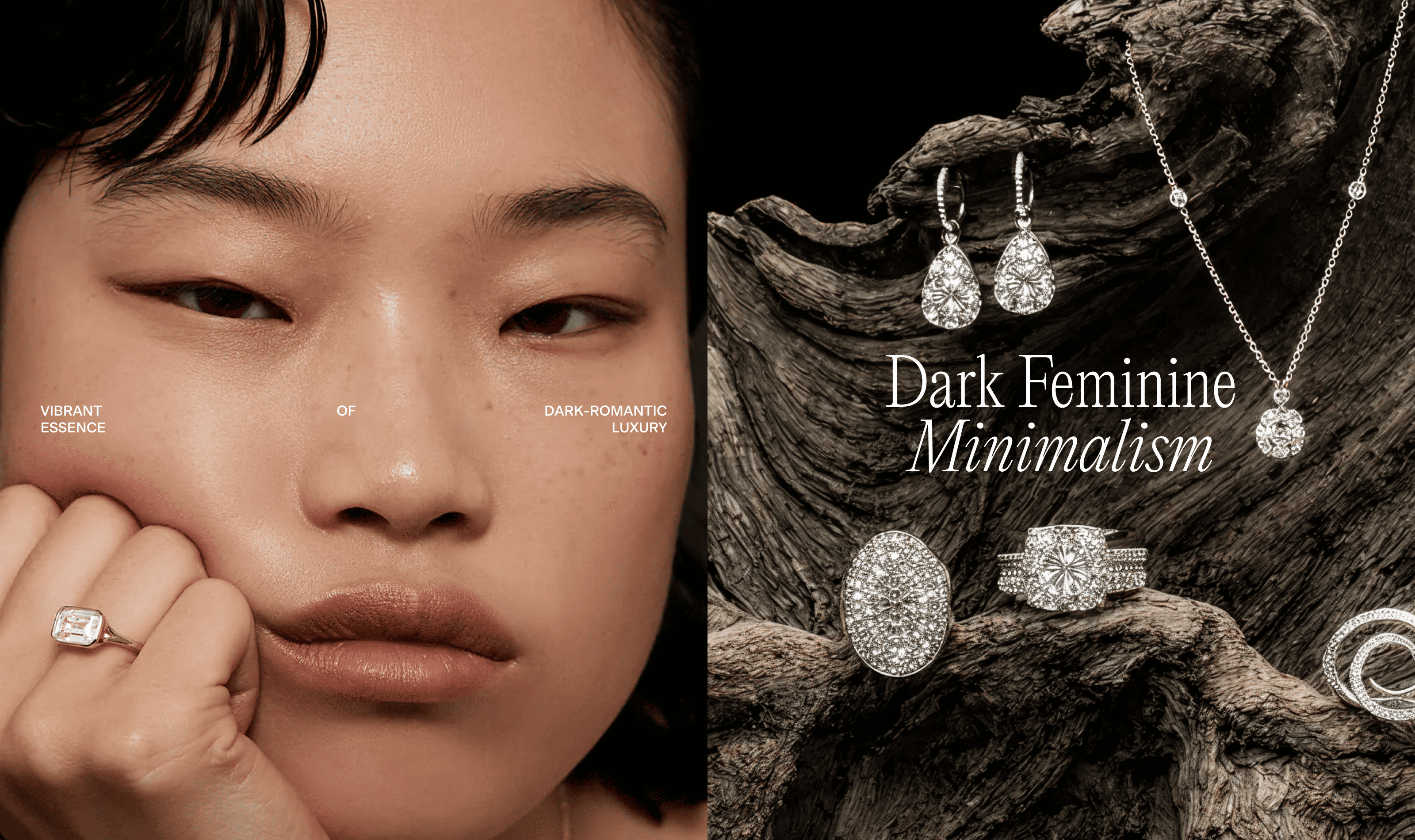 Lune Noire is a dark-romantic jewelry brand rooted in intimacy, contrast, and quiet luxury. The visual language is built around tension — softness and edge, restraint and desire. Romantic grunge textures meet clean layouts, creating a balance between emotion and clarity.